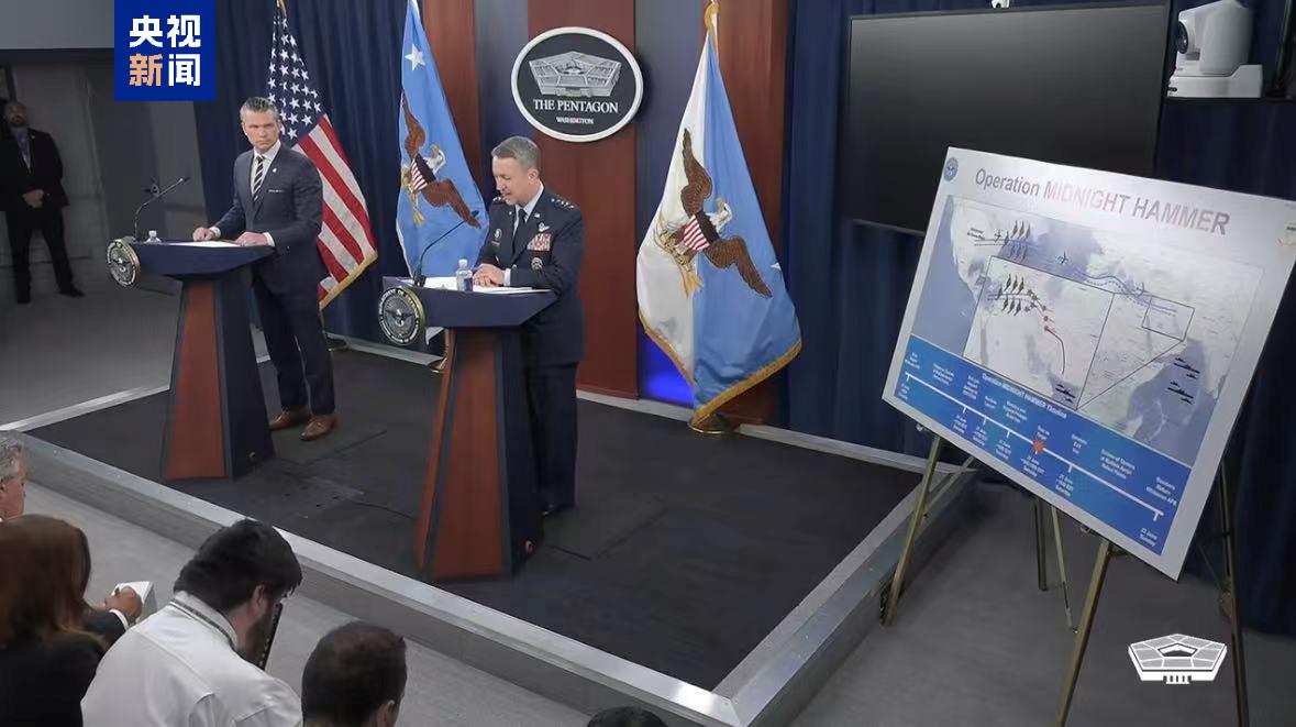 在美国对伊朗三处核设施发动袭击后,美国国防部长赫格塞思与美军参谋长联席会议主席凯恩共同在22日举行了新闻发布会,介绍了美军对伊朗核设施的军事行动内容。