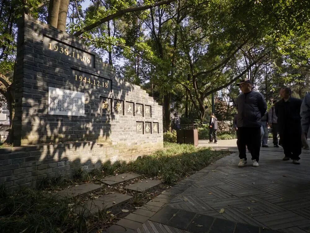 在成都市人民公园,市民驻足观看“成都大轰炸”纪念碑。新华社记者 唐文豪 摄