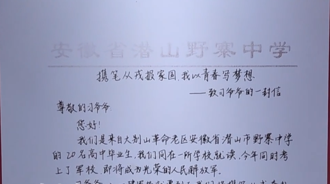 近日,安徽省潜山野寨中学举行庄严的入伍宣誓仪式。39名今年考入军校的高中毕业生身着戎装,面向国旗郑重宣誓。铿锵誓言回荡校园,彰显出他们从军报国的坚定信念。