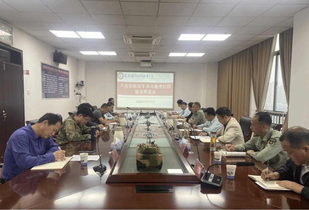 5月11日上午,六安市院校军事兴趣类社团建设推进会在安徽国防科技职业学院举行。六安军分区动员处处长王培喜、六安军分区文职参谋孙绍伟、相关区县人武部负责同志、六安市各院校相关负责人参加会议。会议由六安军分区动员处处长王培喜主持。