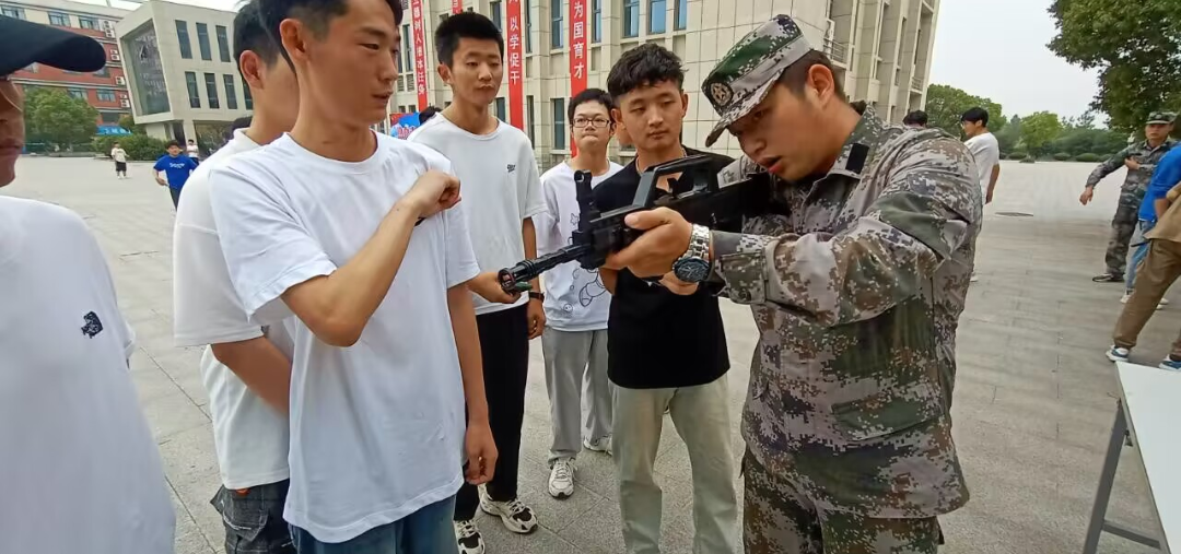 由学院成立的“红旗社”社团的退伍老兵们做主角,他们用亲身经历为同学们讲解入伍须知及军营生活,解答同学们的困惑,现场为同学们进行道具枪模拟演示并指导正确的持枪姿势,吸引众多同学们围观。退伍大学生檀伟同学表示,在部队中,自己得到了锻炼成长,更加深切感受到使命光荣,增强了体质、开阔了视野,变得更加成熟稳重。希望同学们能够积极投身军营,书写不一样的青春。