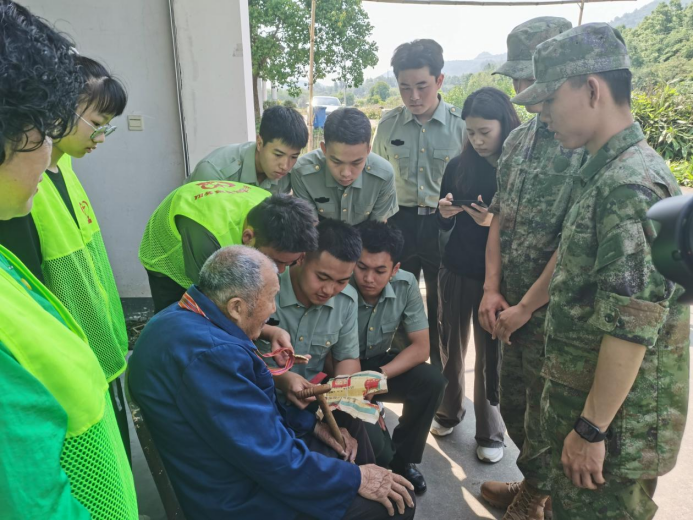 来自黄山学院国防育英社团和休宁退役军人事务局老兵志愿者服务队的25名代表,前往齐云山镇拜访了四位抗战老兵。他们为老兵们送去慰问品,帮助他们打扫庭院、清理杂物、修整门窗,以实际行动表达对老兵的深深敬意与关怀。