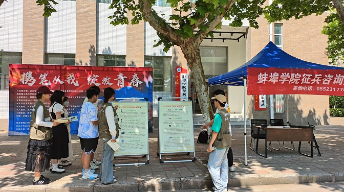 为深入学习贯彻习近平强军思想,扎实做好大学生征兵工作,强化爱国主义教育,激发大学生参军报国热情,营造爱国强军的校园文化氛围。蚌埠学院全面开展2024年下半年征兵工作。
