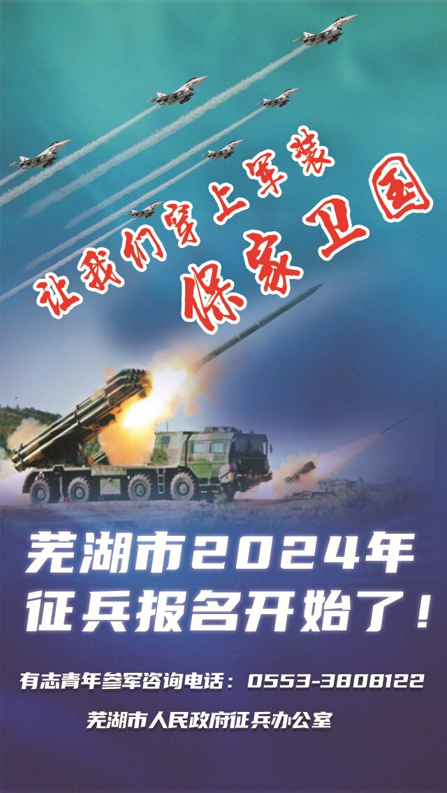 为全面做好2024年下半年征兵工作,积极动员广大适龄青年踊跃报名参军,推动更多优秀青年积极参与国家建设,为国家输送优质兵员,芜湖市全面启动2024年下半年征兵宣传工作。