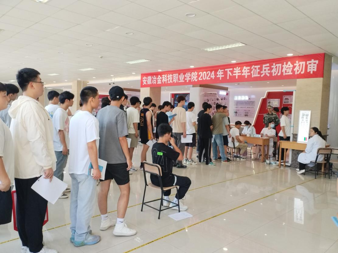 毕业参军正当时,携笔从戎砺青春。为高质量完成年度征兵任务,为部队输送优秀青年。6月18日,安徽冶金科技职业学院2024年下半年征兵初检初审工作拉开帷幕。此次初检初审共有77名应征青年参加,学院领导、马鞍山市雨山区人武部、安民派出所相关负责人现场指导本次初检初审工作。
