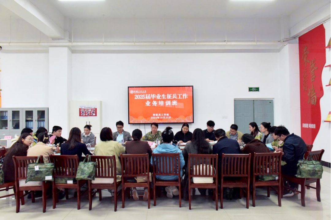 为激发大学生应征入伍热情,拓宽毕业生就业渠道,切实做好2025届毕业生征兵工作,10月22日下午,安徽工业大学举办2025届毕业生征兵工作业务培训班。副校长郑啸,花山区征兵领导小组副组长、征兵办主任、人武部部长余迪出席,学生工作部、研究生工作部、武装部、教务处、后勤处等部门负责人,各学院分管学生工作副书记、全体2025届毕业班辅导员参加。
