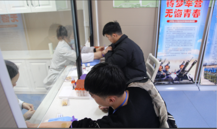 在工作人员的指引下,应征青年依次有序的进行体检。