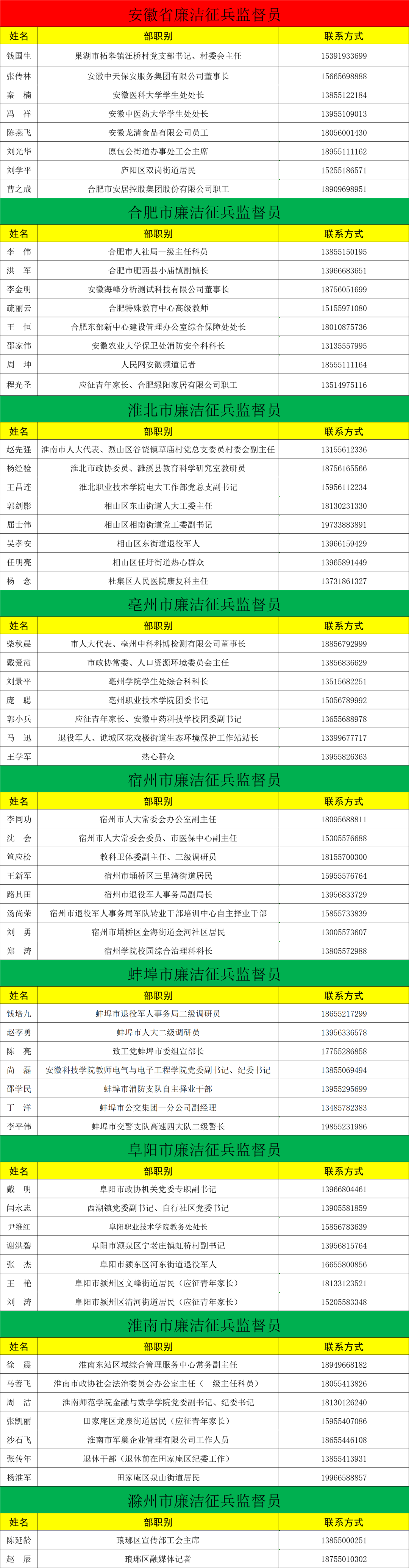 为深入贯彻党风廉政建设有关要求,有效维护广大应征青年合法权益,增强征兵工作透明度,自觉接受人民群众监督,保证全省征兵工作公平、公正、公开,安徽省人民政府征兵办公室公布省、市、县三级廉洁征兵监督举报电话、邮箱,欢迎社会各界对征兵工作进行监督。