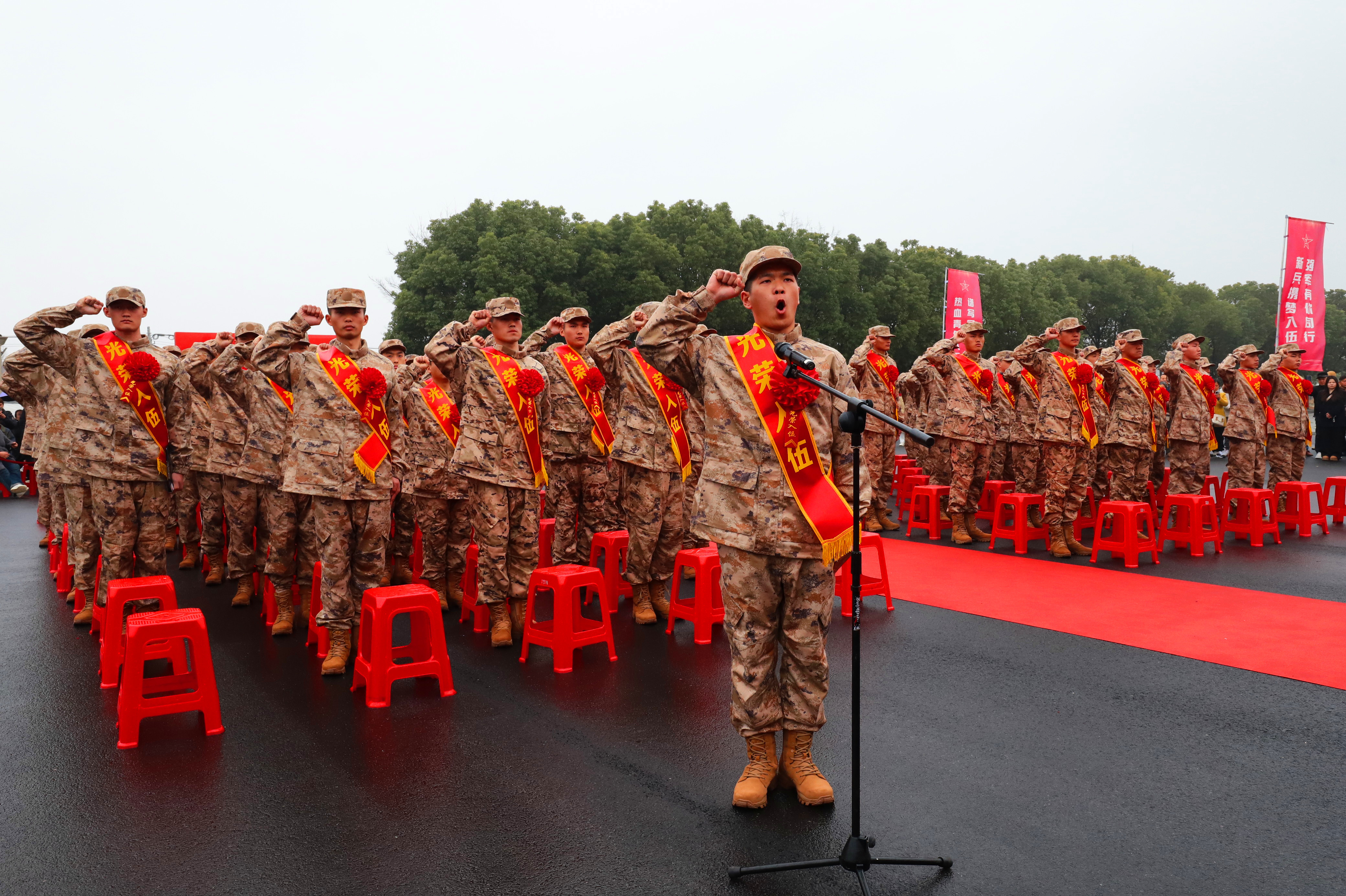 新兵入伍欢送仪式在庄严的国歌声中拉开帷幕,在宣读入伍批准书后,光荣入伍的新战士身着军装,胸戴红花,庄严宣誓。新兵代表、新兵家长代表分别进行了发言。