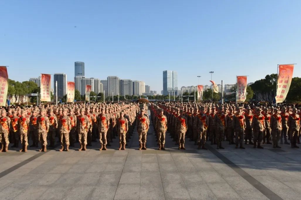 仪式在庄严的国歌声中拉开序幕,现场气氛热烈庄重。数百名新兵身着崭新的军装,胸佩大红花,精神抖擞,他们带着家乡人民的嘱托与期望,即将奔赴军营,开启保家卫国的新征程。