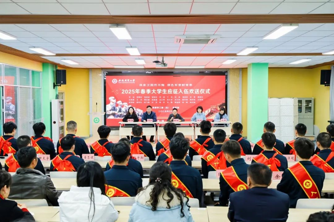 近日,安徽农业大学举行2025年春季大学生入伍欢送仪式。校党委常委、副校长李红,宣传部、教务处、学工部(处)、武装部、校团委等单位负责人,各学院副书记,入伍学生、辅导员及家长代表参加欢送会。