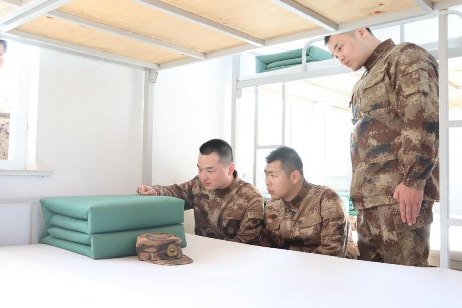 走进生活区,预定新兵们被眼前的场景震撼:雪白的床单平整如镜,被褥叠成棱角分明的“豆腐块”……大家兴致盎然地听着讲解,抚摸着训练器材,感受细节之处见真章的军人作风。