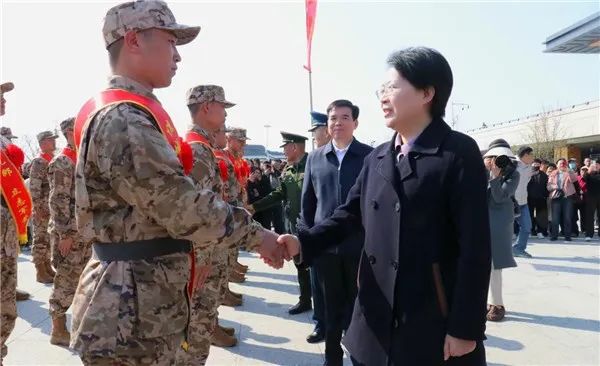 秦凤玉代表亳州市委、市政府和全市人民,向全体新兵送上祝福,向新兵家属致以崇高敬意。她指出,军队是优秀青年学本领、长才干、作贡献的大舞台。希望入伍新兵牢固树立军人意识,坚持正确政治方向,时刻不忘报效祖国的光荣使命,做永远忠诚于党、忠诚于祖国、忠诚于人民的革命战士;把参军入伍作为新起点,全身心投入部队,学好知识,练就本领,加快实现从校门到营门的跨越,从热血青年到铁血军人的转变,努力成为一名有灵魂、有本事、有血性、有品德的新一代革命军人;建功军营、回报家乡,把亳州人民的精神特质融入军旅舞台,争当模范标兵、争创一流业绩,为人生添彩、为家乡争光。市委、市政府将一如既往做好优抚优待工作,当好全体新兵安心服役、建功军营的坚强后盾。随后,秦凤玉来到新兵队伍前,与大家亲切握手,勉励他们在部队里刻苦训练、积极进取,用无私奉献彰显军人本色,以青春热血筑牢国防之基。