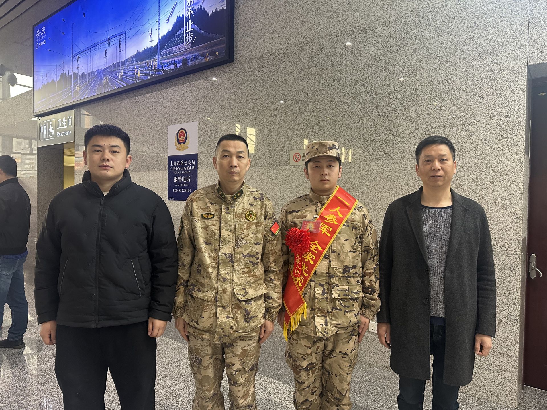 3月19日早上,安庆市宜秀区杨桥镇余墩村“两委”成员来到安庆高铁站共同欢送新兵。在经过2025年春季征兵体检、政审、役前训练等层层选拔后,余墩村青年代珺麟脱颖而出,即将踏上从一名地方青年向一名军人转变的征程。