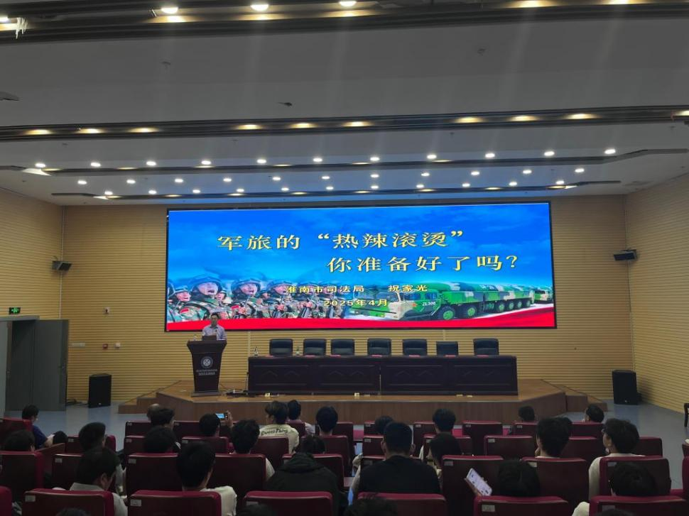 为响应新时代强军号召,近日,安徽理工大学举行2025年参军入伍和直招军官政策宣讲会。淮南市司法局副局长祝家光、宁波市北仑区交通局副局长赵恩辉、合肥市应急管理局执法监督处副处长何金龙三位校友,以及2024届毕业生、武警海警某部孙振威担任宣讲嘉宾,260余名学子现场聆听。