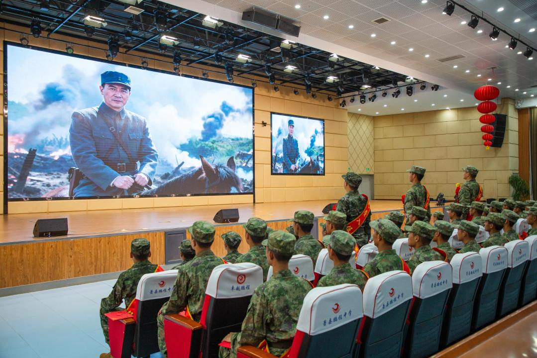 活动中,结合彭雪枫将军在此战斗的历史足迹,通过AI技术复原彭将军影像,与新兵进行跨越时空的对话交流,激励他们传承革命精神、坚定参军报国信念。