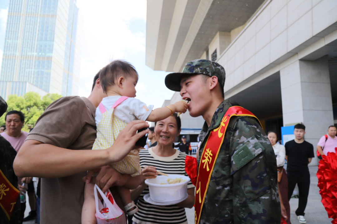 “俗话说‘上车饺子下车面’,希望孩子们在部队好好努力,早日成为一名合格的战士!”这是作为母亲对儿子的殷殷期盼。送别时刻,几位“兵妈妈”亲手包了水饺,一人一个轮流喂给新兵们,希望大家到部队后,始终牢记家人嘱托,尽快适应军营训练生活,安心服役。
