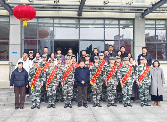 每一次出征,都是一次庄严的承诺。以2025年3月学校为应征入伍学生举行欢送会为例,副校长田园为入伍同学佩戴绶带并颁发纪念品,以“男儿何不带吴钩,收取关山五十州”勉励学子们在军营绽放光彩。入伍学生代表龚孝锋庄严承诺:“到部队后一定服从命令、刻苦训练,努力成为优秀的人民子弟兵,不辜负学校、家人的期望。”这样的欢送仪式,不仅让入伍学生感受到学校的关怀与期望,更激励着更多在校学子投身军营、报效祖国。