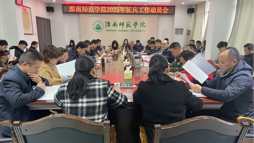 12月13日,淮南师范学院在勤政楼314会议室召开2025年征兵工作动员会议。