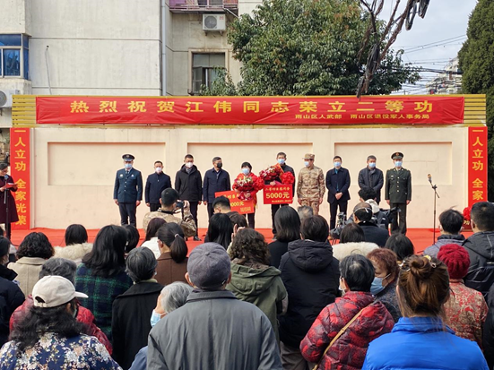 马鞍山市:春节前,马鞍山市、区两级退役军人事务局开展为荣立“二等功”的现役军人家庭送喜报活动,让军人军属感受到满满的荣誉感,营造拥军优属的浓厚氛围。