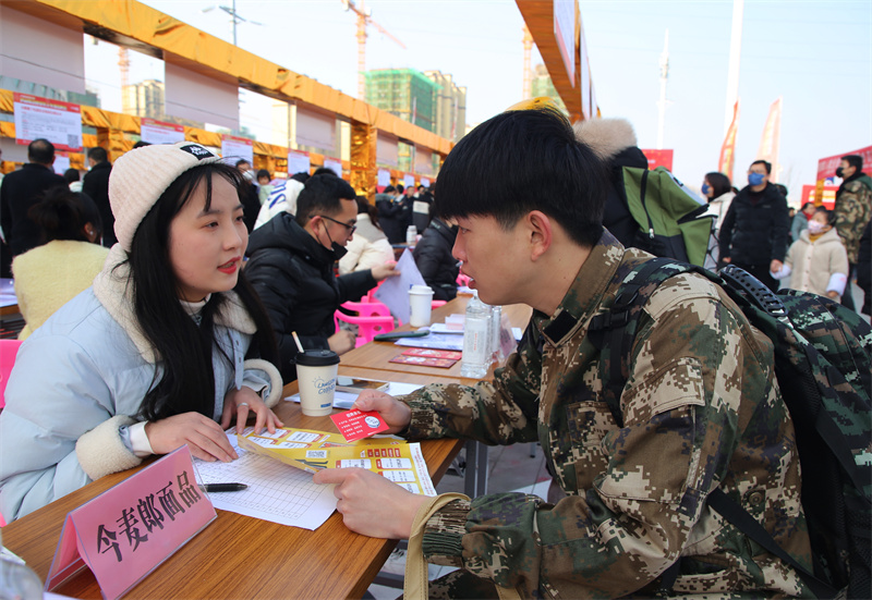 2月5日,农历正月十五元宵节,江淮大地乍暖还寒。安徽省天长市吾悦广场春潮涌动,热闹非凡。2023年苏皖跨省联动退役军人专场招聘会在这里火热举行。