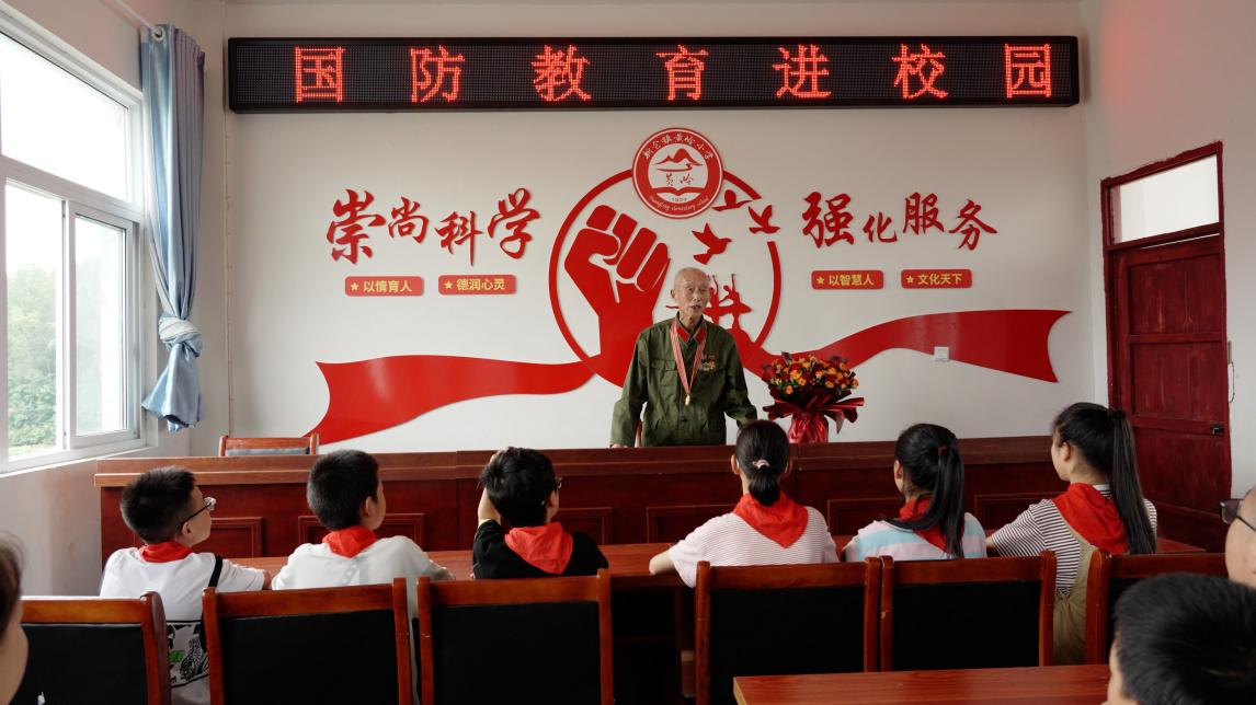 讲授一堂国防教育课。少年强则国强,邀请抗美援朝老兵严桂喜走进校园,用自己的亲身经历带领孩子们重温那段血与火的峥嵘岁月,讲述抗战老兵在朝鲜战场保家卫国浴血奋战的英雄事迹,使大家充分感受到革命先辈的铮铮铁骨和满腔的爱国热忱,进一步在孩子们的心田里播下一颗颗爱国拥军的“种子”。