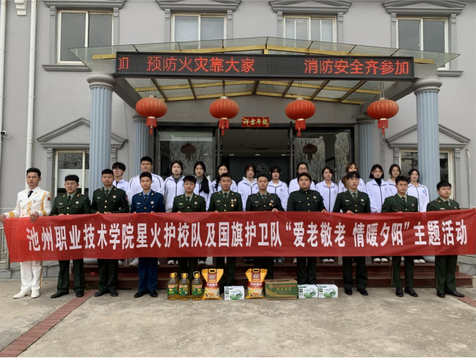 情系雷锋月,爱洒三月天。为大力发扬雷锋精神,弘扬中华民族爱老、敬老的传统美德,近日,池州职业技术学院星火护校队、国旗护卫队等军事兴趣类学生组织成员走进贵池区秋浦颐养照护中心敬老院,开展“爱老敬老 情暖夕阳”志愿服务活动,探访慰问老人,为他们送爱心、送温暖、送关怀。