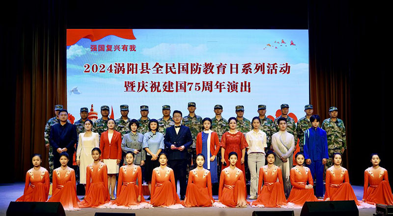 9月21日,值第二十四个全民国防教育日到来之际,安徽省涡阳县举办全民国防教育日系列活动暨庆祝新中国成立75周年演出,旨在深入普及国防教育,增强全民国防观念;传承红色基因,筑牢国家安全的钢铁长城。县领导刘峰、韩龙、陈建成、栗怀忍参加活动。