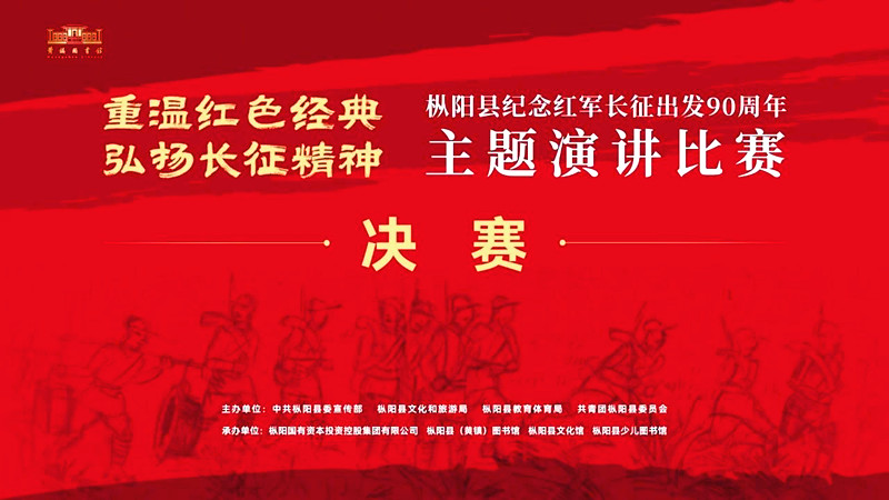 10月19日,由中共枞阳县委宣传部、枞阳县文化和旅游局、枞阳县教育体育局、共青团枞阳县委员会主办,枞阳县国有资本投资控股集团有限公司、枞阳县图书馆、枞阳县文化馆、枞阳县少儿图书馆承办的枞阳县纪念红军长征出发90周年演讲比赛在图书馆多功能厅圆满结束。