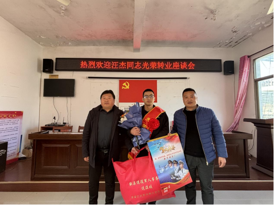 昨日建功军营,今朝荣归故里。为进一步弘扬拥军优属的优良传统,营造“参军光荣、退役光荣”的良好氛围,近日,霞坑镇在里方村村委会召开退役军人迎接仪式暨座谈会,热烈欢迎退役士兵汪杰光荣返乡。