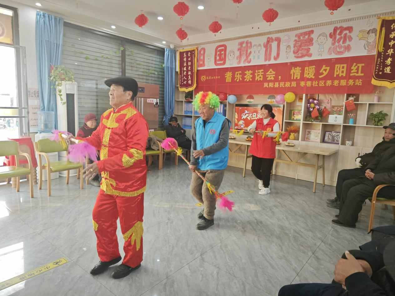 在枣巷社区拥军食堂,扇舞《东方红的故事》、双条鼓《春风吹绿花鼓乡》等节目依次登台。多种多样、精彩纷呈的表演得到了老年朋友们的阵阵掌声,大家的欢声笑语此起彼伏,热闹非凡。