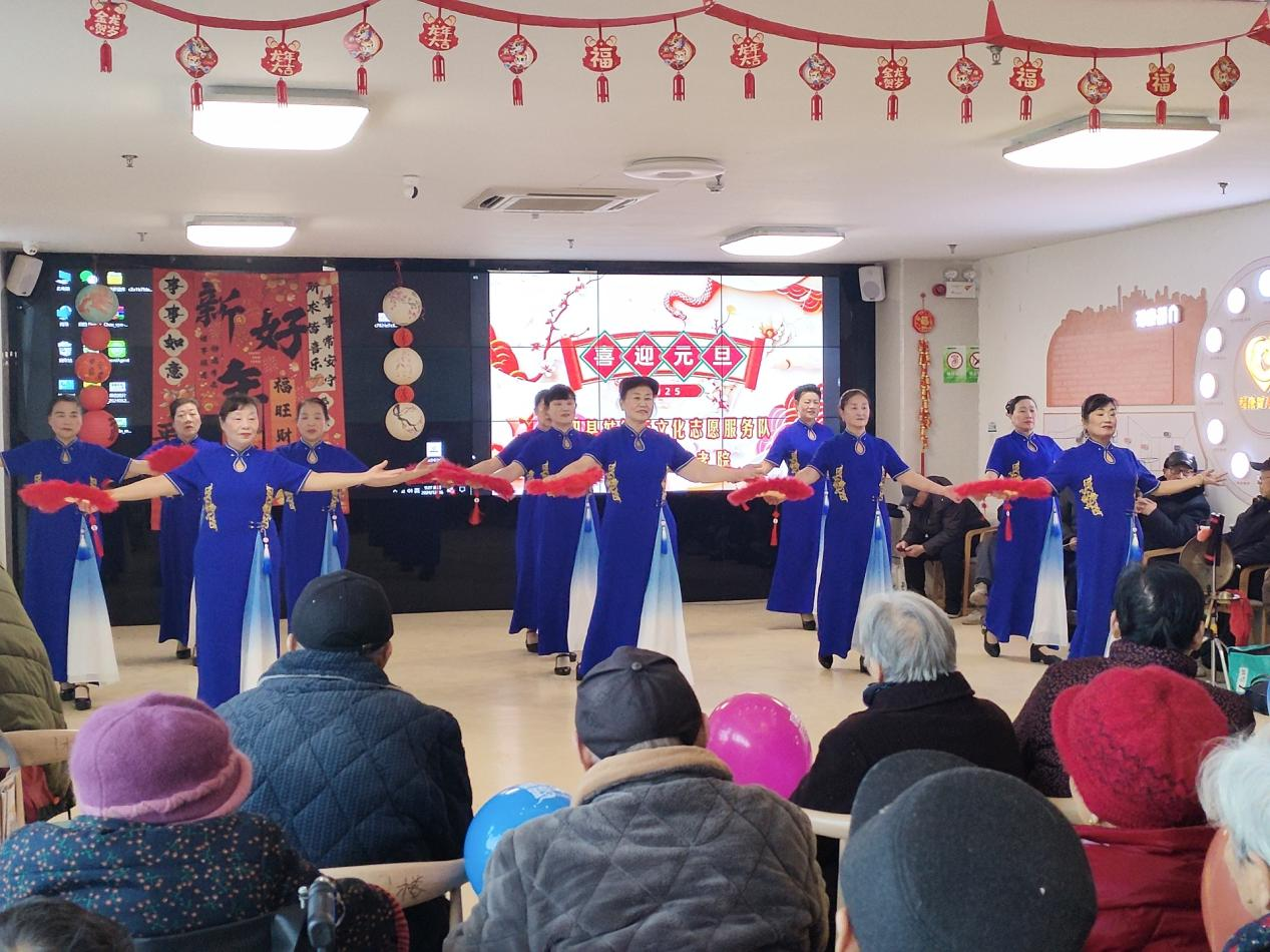 在太平社区拥军食堂,工作人员和志愿者表演的民歌《王三姐赶集》、黄梅戏《天仙配》等节目轮番上演,表演精彩纷呈,活动现场笑声频频,叫好声不断,气氛热烈高亢,温暖的祝福、优美的歌声、动人的旋律、欢快的舞蹈、给老人们带来快乐,老人们一边品尝着工作人员准备的零食,一边唠着家常,脸上洋溢着喜悦的笑容。