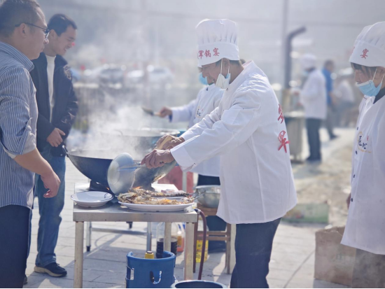 在活动的另一处,有着多年的历史典故文化的“军锅宴”也在热火朝天的准备着,一桌桌富有安凌特色菜肴的军锅宴和蛋炒饭供各地游人、驻地官兵、摄影爱好者和村民们前来品尝。八仙桌上有序摆放的千层锅、杀猪汤、辣椒粑、星联泉水鱼、雷湖土鸡、腊肉蒸香椿等12道极具安凌地方特色的美食。