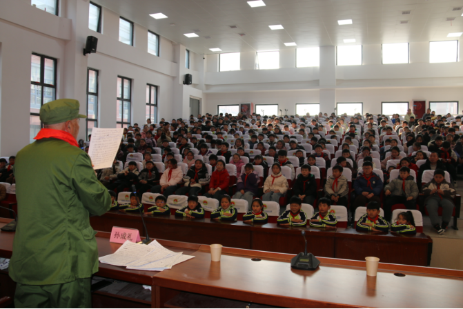 在泗城中心校清水湾校区大礼堂,400余名师生聆听了对越自卫反击战老战士孙成礼所作的传承红色基因主题报告。孙成礼结合亲身经历,声情并茂地讲述了自己在对越自卫反击战中“战前动员”“奔赴战场”“浴血奋战”“艰难突围”“抢救战友”“火线加入中国共产党”“冒着枪林弹雨为前线运送弹药装备”等故事,带领同学们在沉重的回忆中,感受那段永不褪色的硝烟战火、红色记忆,教育引导同学们深刻理解爱国主义的精髓,厚植爱国主义情怀,将个人理想同祖国前途、民族命运紧密联系在一起,让爱国主义成为坚定信念、精神力量和自觉行动,把红色传统、红色记忆、红色基因根植于青少年心中。