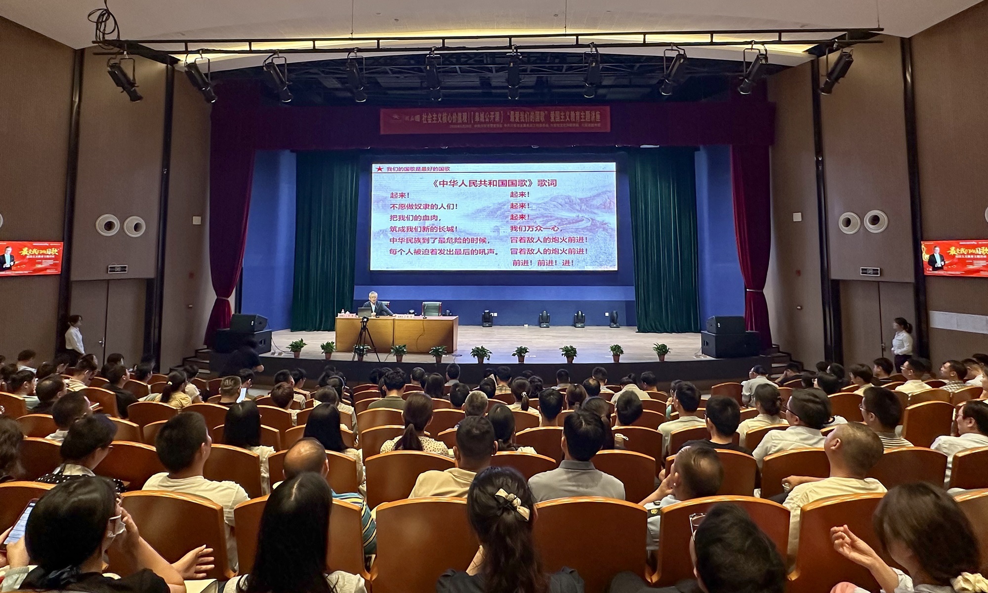 “国歌是国家的声音标志和象征,是民族精神的集中体现,是神圣不可侵犯的音乐经典。”讲座中,于海教授以“最爱我们的国歌”为主题,从“国歌的概述”“《义勇军进行曲》的发展历程”“国歌崇高神圣、至高无上”“国歌是家国情怀的生动教材”“我们国歌是最好的国歌”五个部分,深入浅出、系统全面地剖析了国歌的历史变迁、精神内核与艺术魅力。他以生动的语言、详实的史料,将国歌背后的故事娓娓道来,让观众深刻感受到国歌所承载的厚重情感与伟大力量。