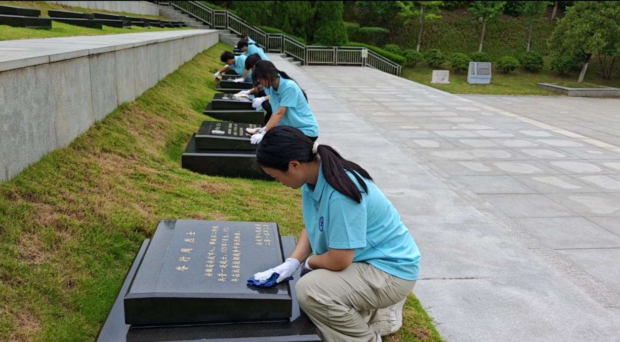 活动现场,同学们手持定制集章明信片,开启了一场别开生面的红色寻迹之旅。在庄严肃穆的主题雕塑前,大家鞠躬致敬,以最虔诚的姿态缅怀先烈;在知识问答环节,青年学子们踊跃抢答,在历史细节中触摸往昔烽火;在实践传承环节,同学们仔细擦拭烈士墓碑,每一个动作都饱含对英烈的敬仰与追思;在烈士英名墙前,同学们诵读烈士诗抄的铿锵之声,更是将跨越时空的革命豪情展现得淋漓尽致。随着一个个设置任务的完成,一枚枚承载着红色记忆的印章逐渐勾勒出先辈们的奋斗轨迹,让红色教育从书本走向实践,从理论融入血脉。