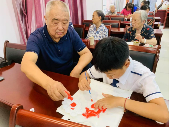 在“红心向党 手工拓印”环节,军休干部与孩子们携手创作。“老兵”们手把手教授拓印技巧,指导孩子们将“以热血敬山河”“军魂永驻”等创意文字呈现在帆布袋上。72岁的老兵张爷爷特意带来珍藏的军用水壶模具,他说:“让孩子们亲手触摸历史的温度,这份红色记忆才能代代相传。”经过半个多小时的精心制作,一件件饱含深情的作品逐一亮相,成为连接不同时代的红色纽带。