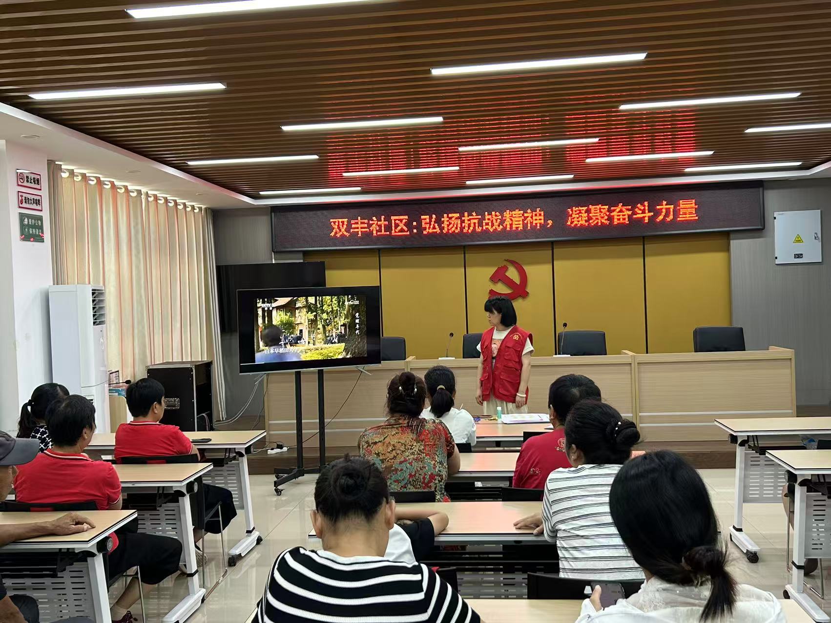 为铭记历史、缅怀先烈,传承和弘扬伟大抗战精神,在纪念中国人民抗日战争暨世界反法西斯战争胜利80周年之际,双丰社区党总支联合新时代文明实践站、团支部、计生协、妇联开展“弘扬抗战精神 凝聚奋斗力量”主题纪念活动,通过观看历史纪录片,讲红色故事与剪纸创作等形式,让社区居民重温那段波澜壮阔的岁月,汲取奋进力量。
