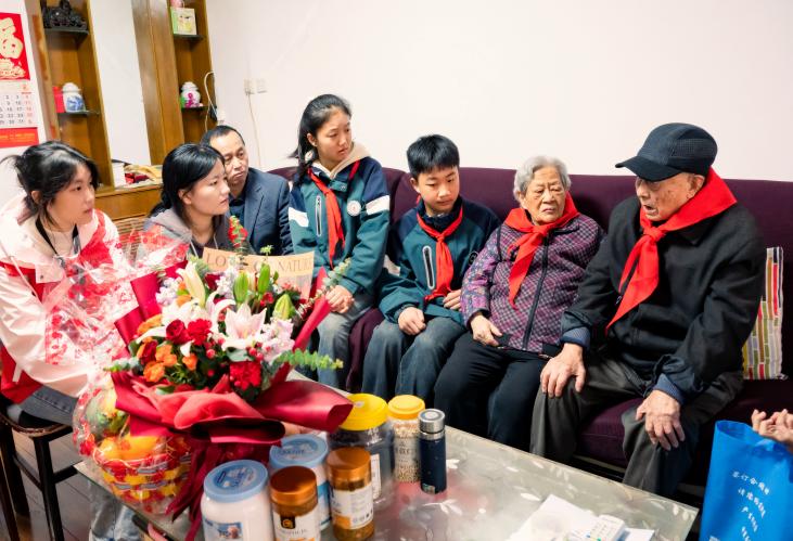 重阳节来临之际,皖西学院马克思主义学院携手裕安区高皇学校,组织师生代表于10月25日开展以“聆听革命故事,传承红色基因”为主题的思政教育实践活动——专程拜访抗战老兵宋加明。活动由皖西学院马克思主义学院王俊副教授、邱龙老师及高皇学校德育部主任高媛媛带领皖西学院蒲公英红色文化宣讲团成员和高皇学校学生代表共同参与。