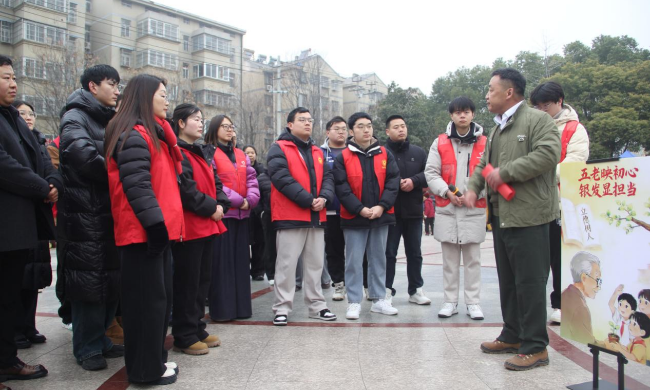 近日,阜阳市颍州区关工委精心组织“五老”银发人才讲师团走进京九路街道开展“五老映初心、银发显担当”思政故事会分享活动。活动特别邀请参战退役老兵冯翻江同志亲临现场,以自身亲历的战火岁月为生动教材,为街道辖区青少年、党员代表及社区工作者带来一堂震撼心灵、启迪思想的红色思政课。