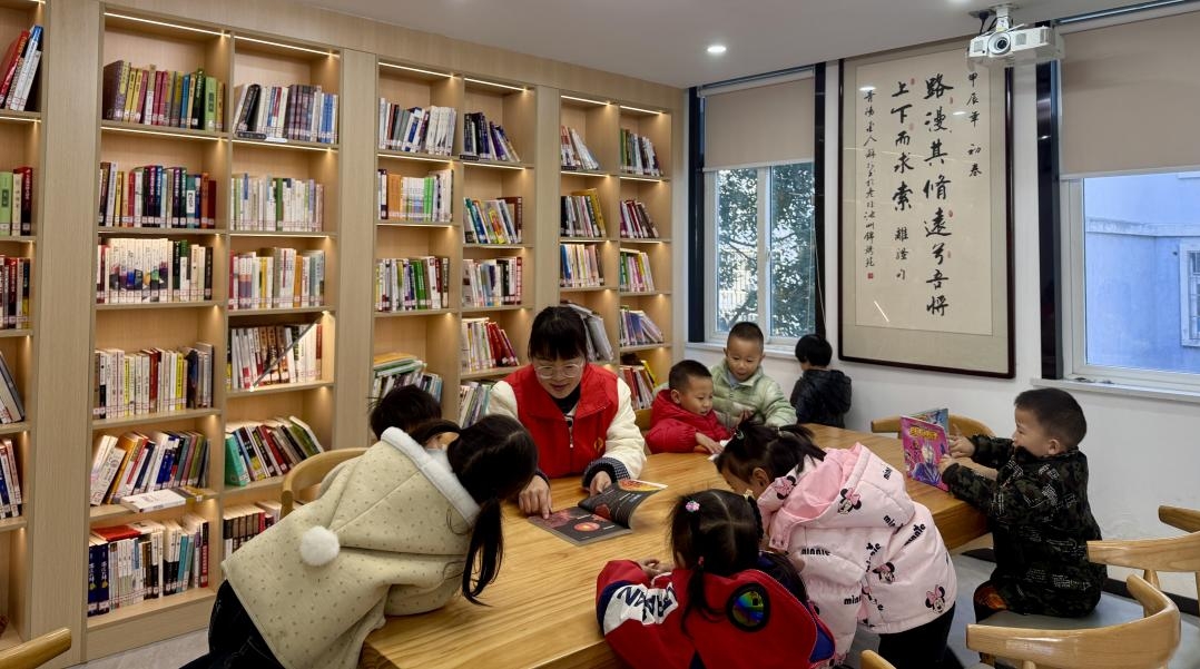 11月26日上午,池州市贵池区江口街道锦绣苑社区党总支联合辖区幼儿园在社区阅读空间举办红色阅读活动,面向学龄前儿童开展沉浸式阅读体验。