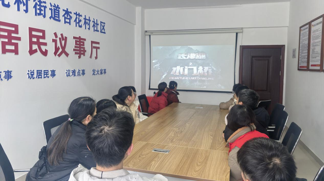 为铭记革命历史、缅怀英雄先烈,传承和弘扬伟大的抗美援朝精神,在长津湖战役胜利纪念日来临之际,池州市贵池区杏花村街道杏花村社区精心组织党员干部、居民代表集中观看红色影片《长津湖之水门桥》,以光影为媒回望烽火岁月,以英雄精神厚植家国情怀。