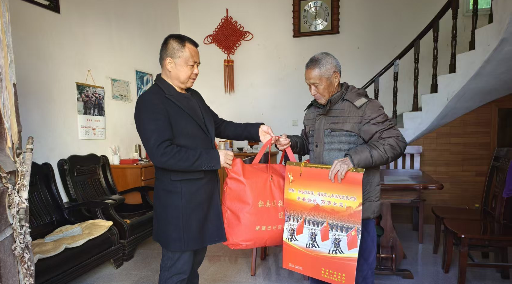 歙县残联:送新年挂历 情暖老兵心