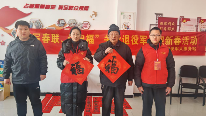 为让辖区退役军人过一个安乐祥和的新年,在农历春节来临之际,1月27日上午,合肥经开区开展“情系老兵,暖冬送福——为退役军人贴春联”活动。