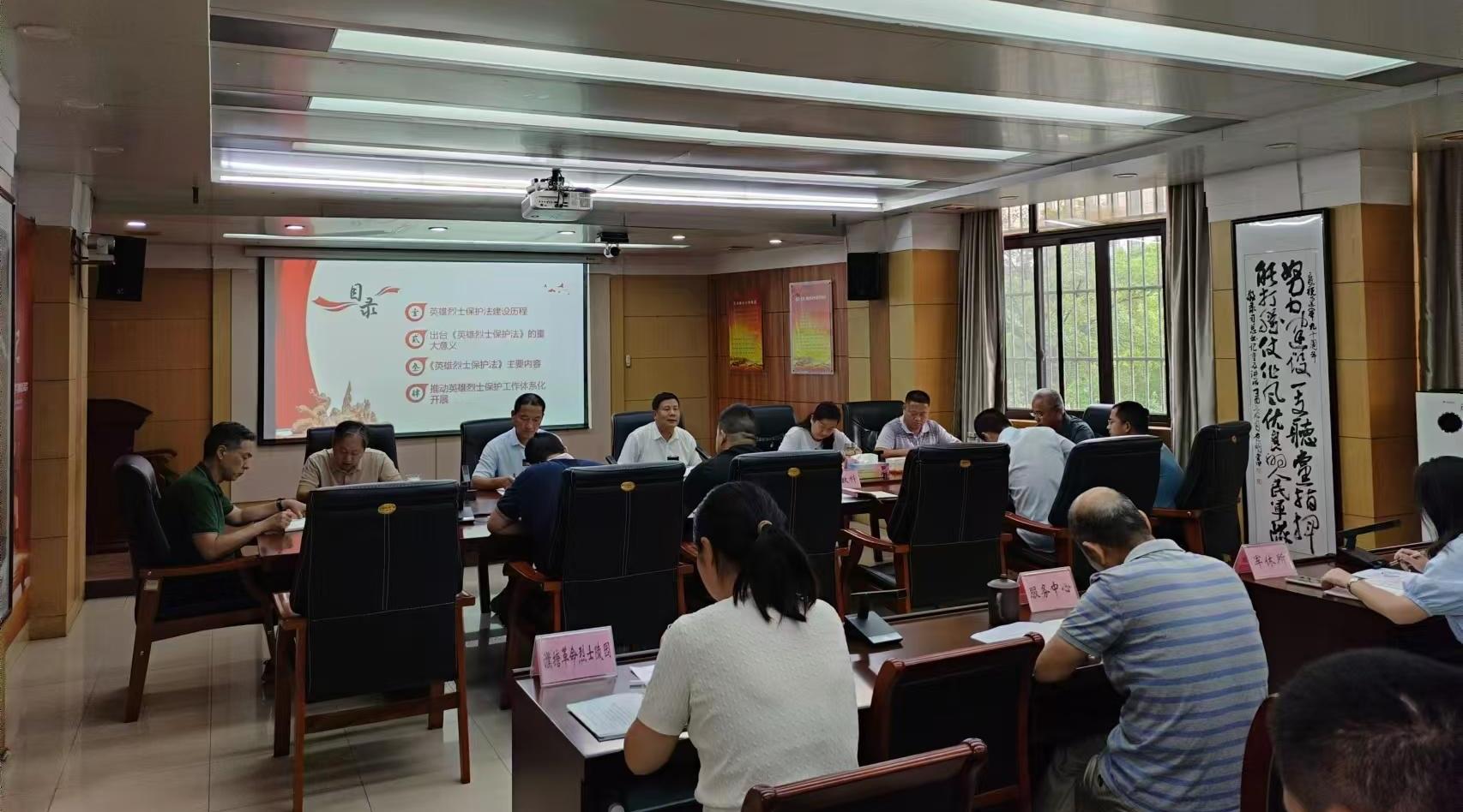 为更好地做好烈士褒扬工作,8月27日,马鞍山市退役军人事务局开展《中华人民共和国英雄烈士保护法》宣讲活动。局机关全体人员、局属事业单位负责人参加学习。