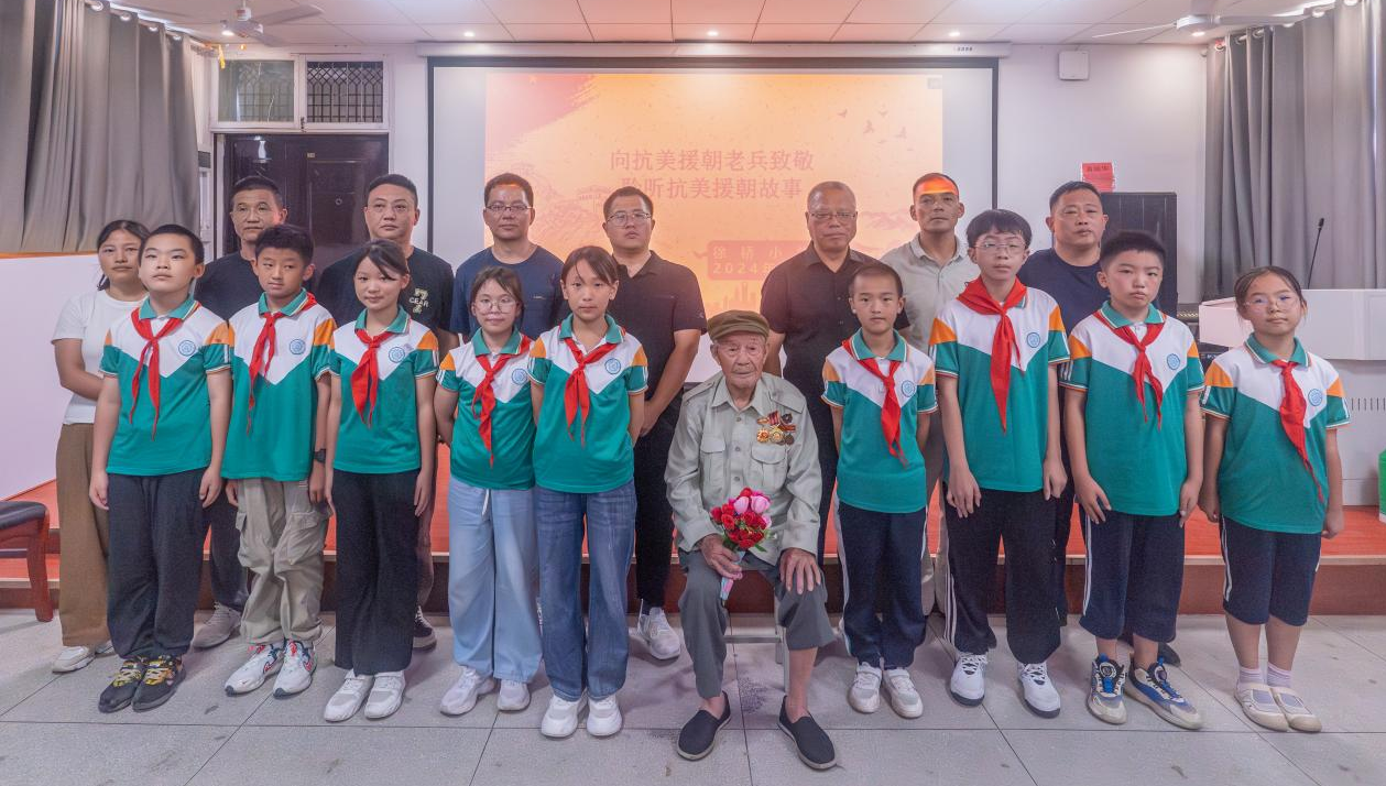 在太湖县徐桥小学多媒体教室里,当92岁的抗美援朝老兵唐学凡用慷慨激昂的声音讲述战斗故事时,坐在台下的老师孩子们自发起立鼓掌……